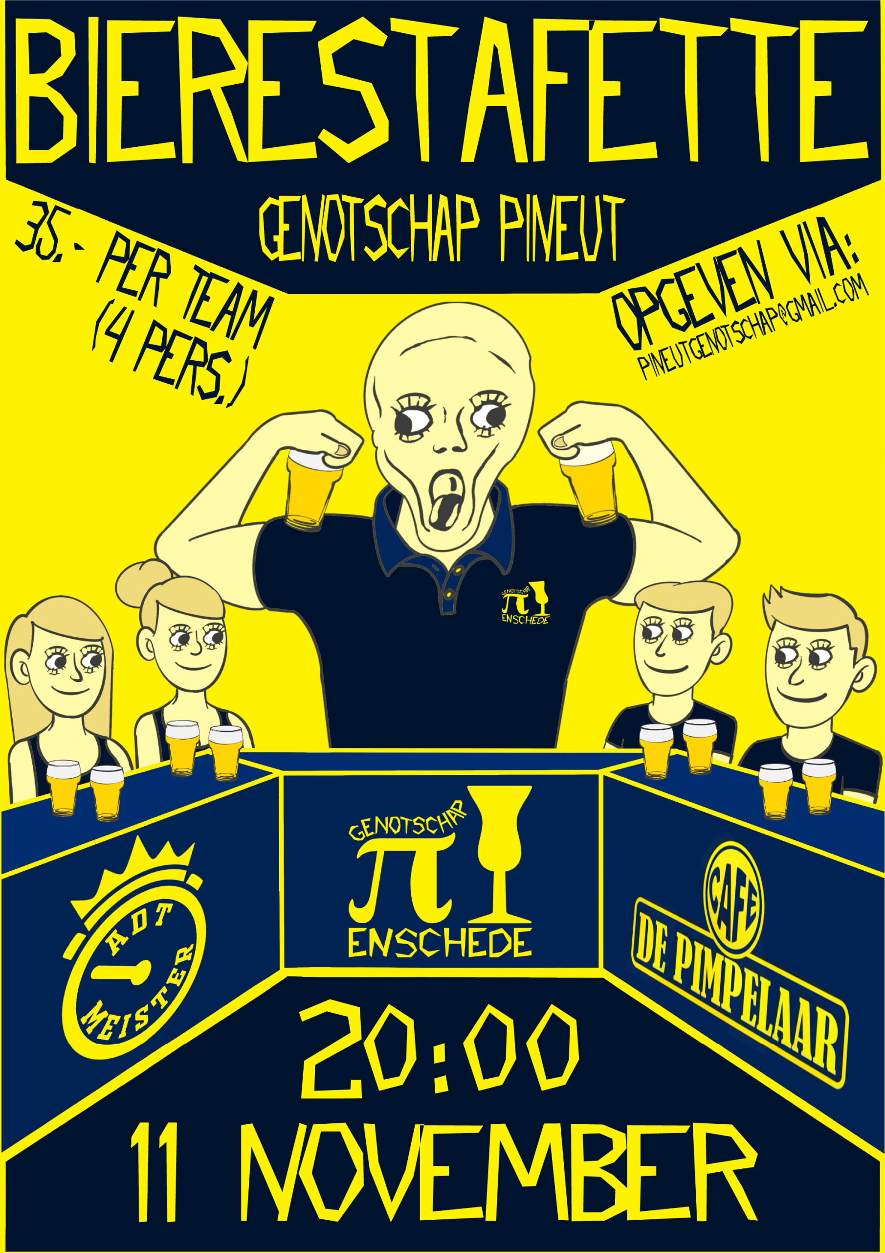 11 November is het weer zover!!! De Pineut bierestafette zal weer plaatsvinden in café de Pimpelaar!! Het belooft weer een strijd te worden tussen de beste en meeste competetieve bierdrinkers voor de begeerde titel van Pineut Bierestafette 2025 winnaar. Tussen de rondes door is er ook een halve liter competitie, dus voor ieder een mogelijkheid om zo snel mogelijk zo veel mogelijk bier te drinken. Schrijf je nu in door een mail te sturen naar pineutgenotschap@gmail.com